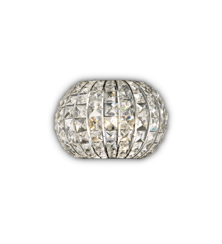 Corp de iluminat cu design modern potrivit pentru un interior sofisticat si luxos. Cadrul metalic argintiu imbinat armonios cu elemente de sticla decorativa.