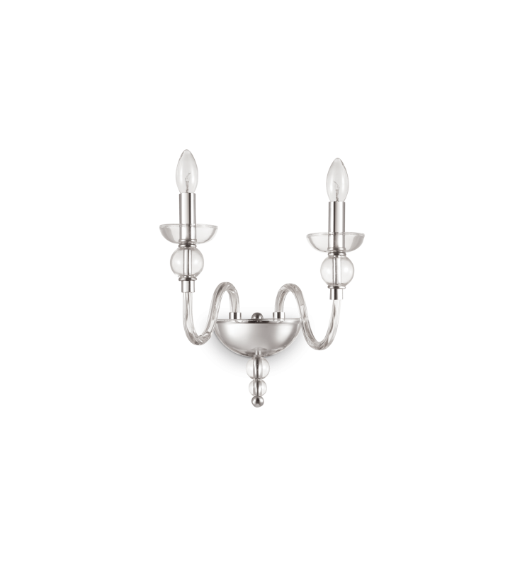 Aplica cu design elegant, sofisticat cu abajur din material textil alb, cristale decorative si cadru metalic argintiu